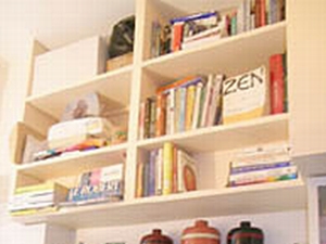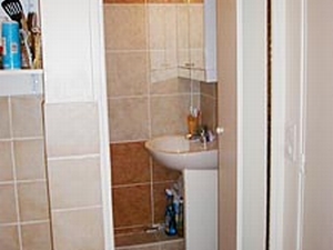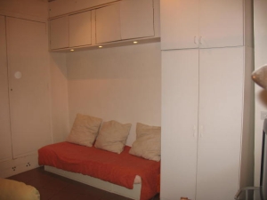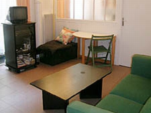 A long wooden desk creates a working or eating space as does the kitchen countertop or fold-out table in the living room. There are many inexpensive ethnic take-outs and gourmet French treats.